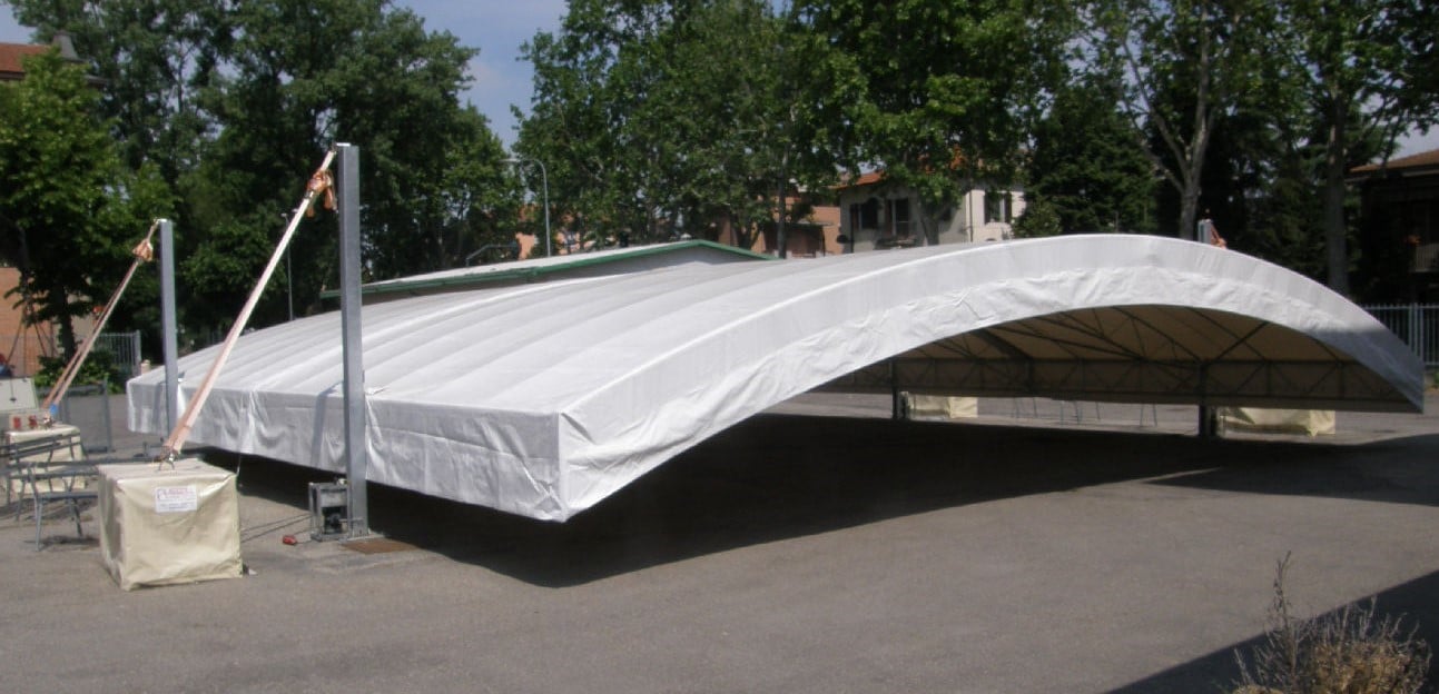 Facendo ruotare la speciale "manovella" posta su ogni Colonna Automontante, la Tendostruttura LUNA inizierà a "sollevarsi" fino a raggiungere la quota prestabilita.